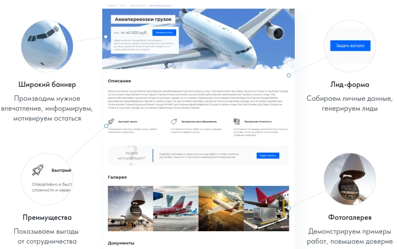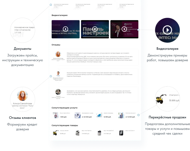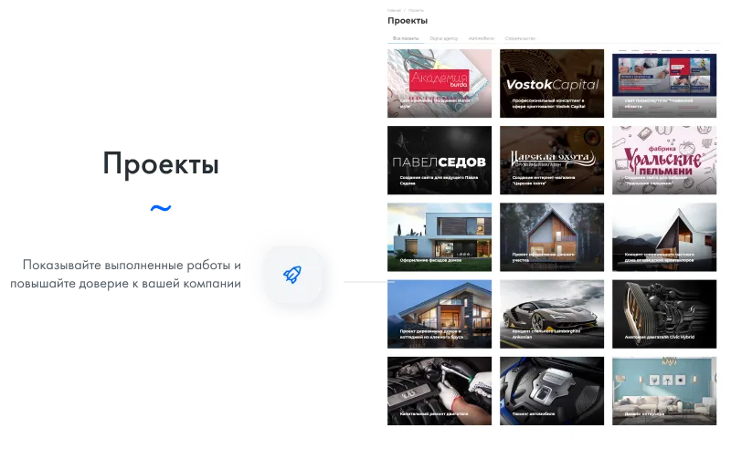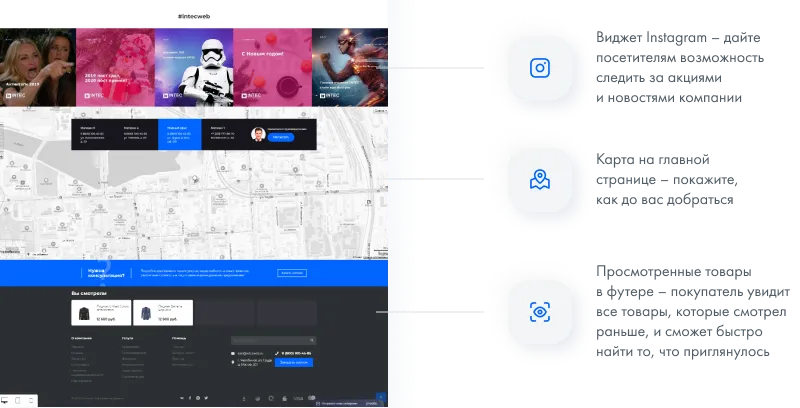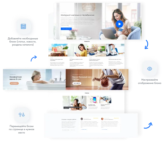 - Вам не нужно править HTML-код. Вы просто добавляете необходимые блоки (отзывы, лид-формы, баннеры и разделы каталога) и перемещаете их по странице в любое место.
