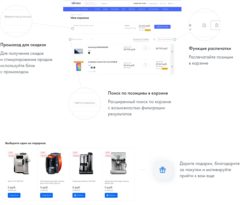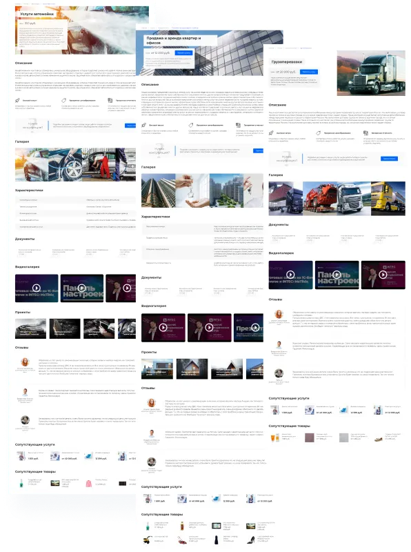 - несколько вариантов отображения основных разделов сайта: каталог, блог, новости, контакты;