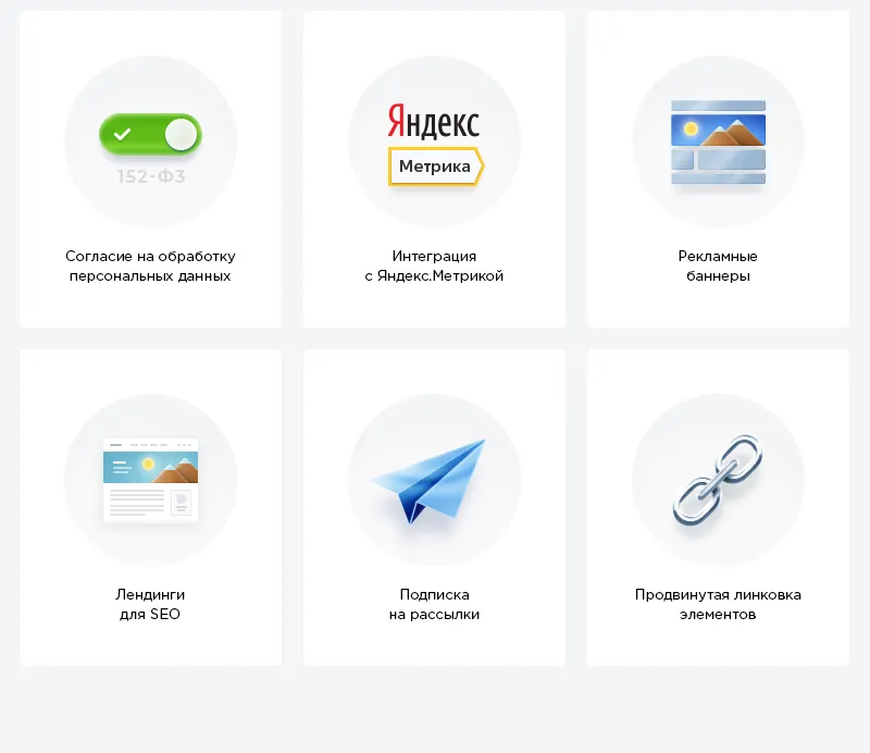 Совершенствуйте маркетинг и стратегию. Используйте конструктор посадочных страниц, возможности для SEO-продвижения и отслеживайте эффективность своей работы благодаря простой интеграции с системой аналитики Яндекс.Метрика.