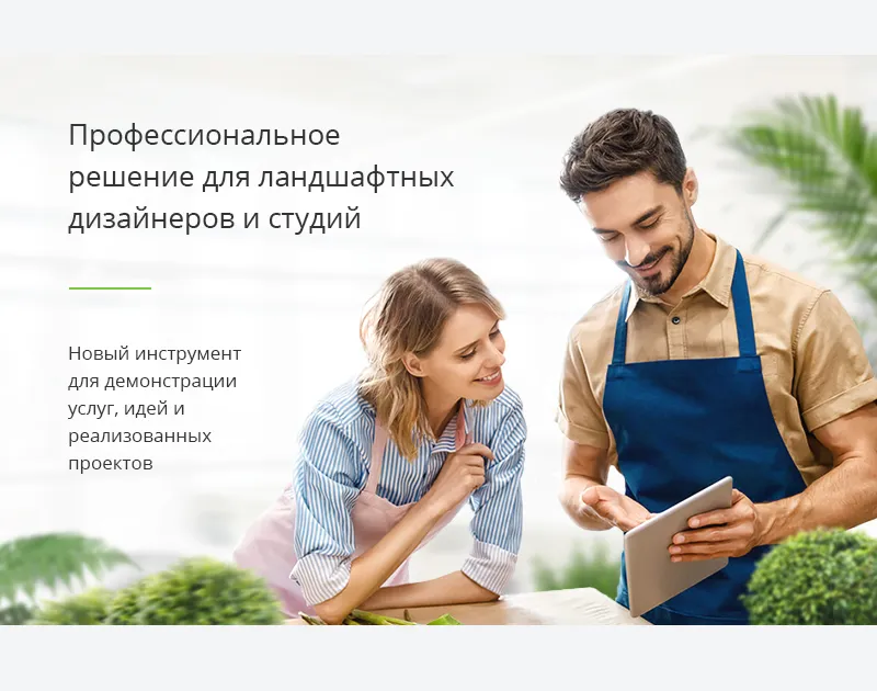 Потенциальный заказчик ландшафтного дизайна должен влюбиться в ваши работы. И мы сделали для этого все. Поразите будущего клиента с первого взгляда с помощью нового функционала «Портфолио» – сравнения кадров. Загрузите фотографию до вашей работы над участком и снимок результата.